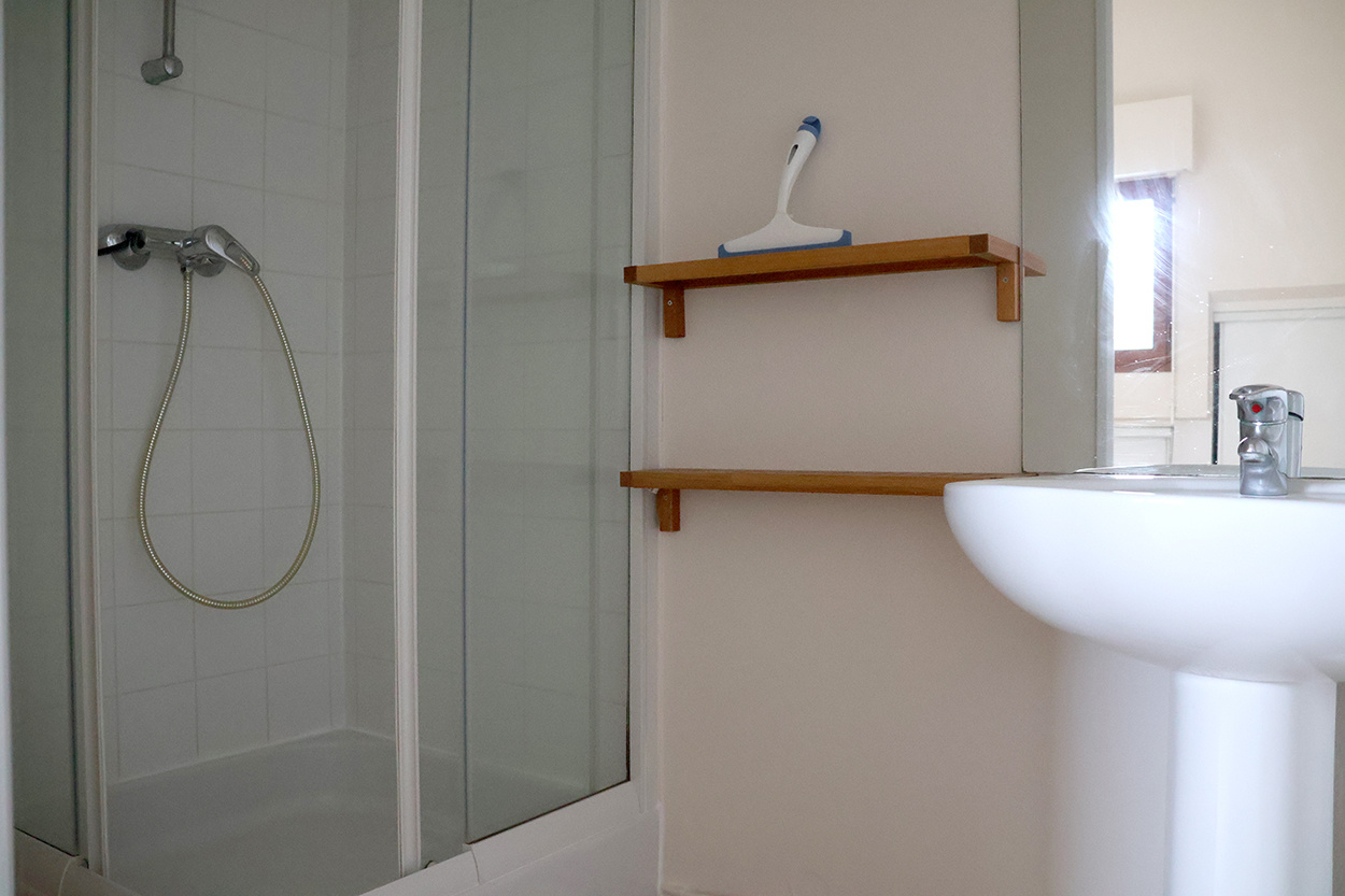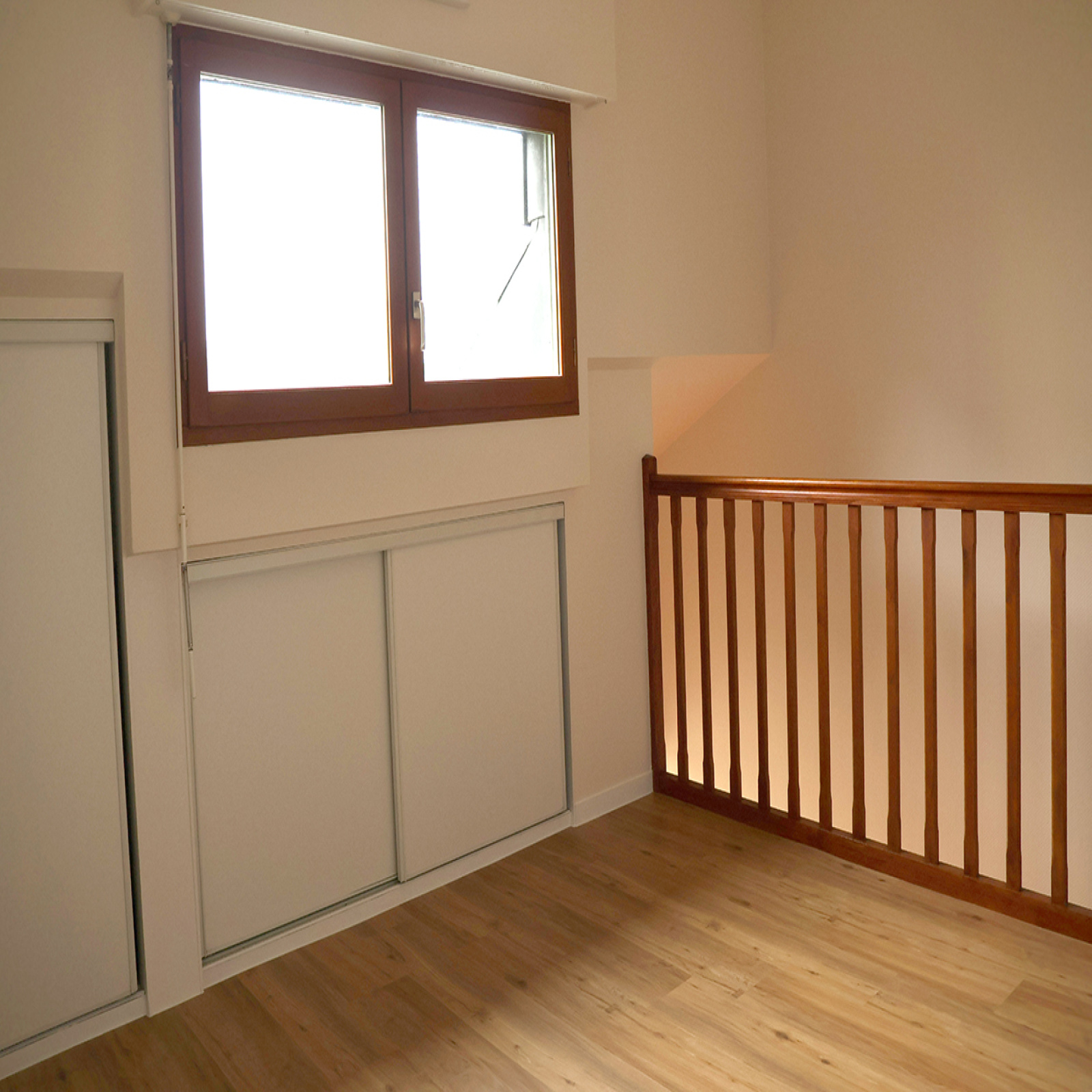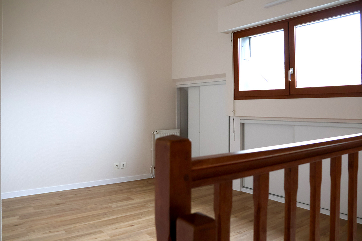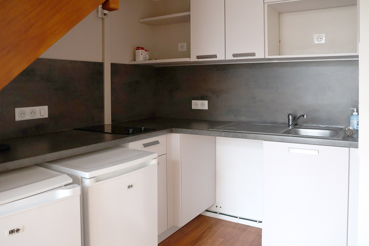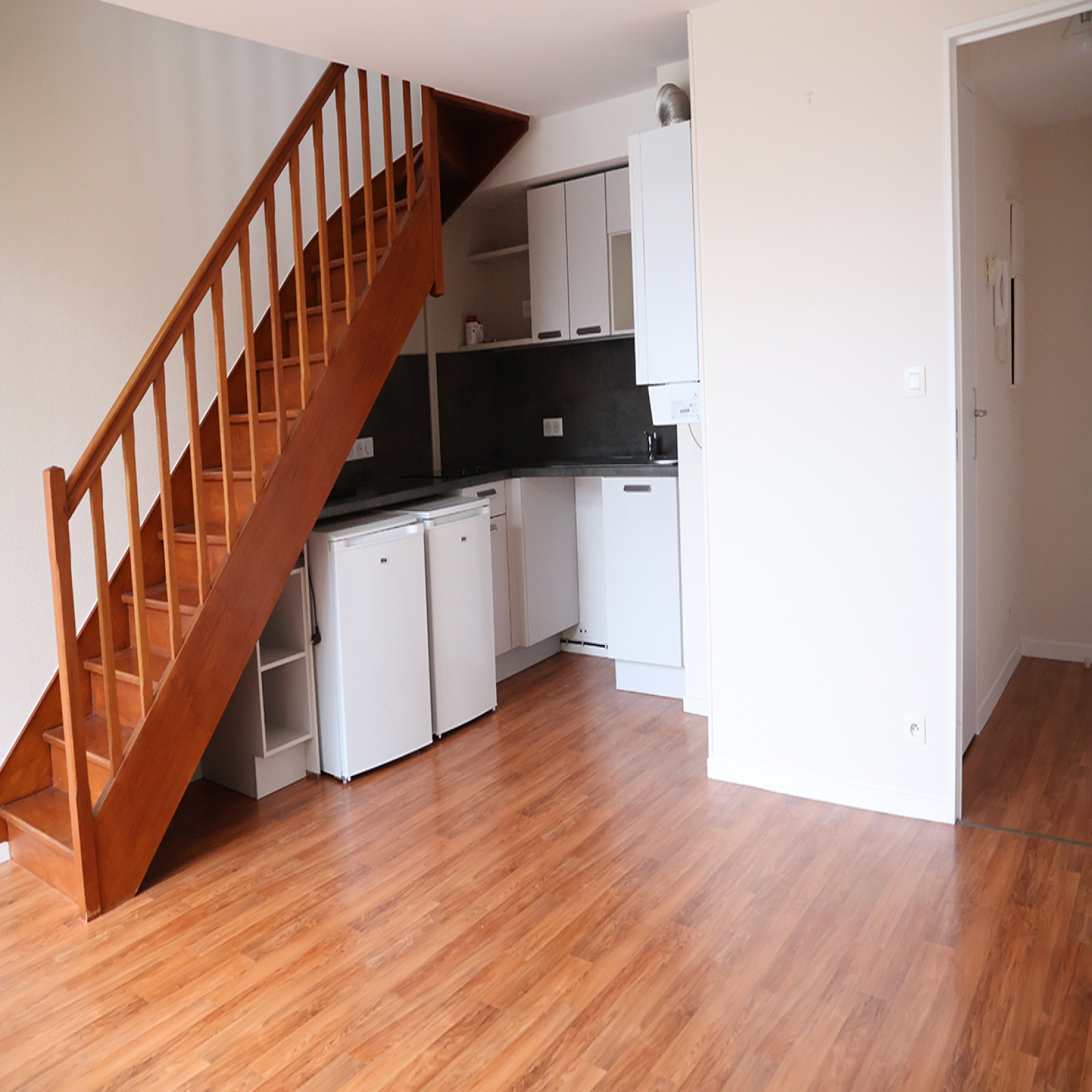 L'agence immobilière ENTREZCHEZVOUS COM, vous propose à la location, situé dans le centre de RENNES, entre le Colombier (à moins de 2 min à pied de la station de métro « Colombier » de la ligne B), la place de Bretagne et République, dans une petite copropriété sécurisée avec interphones, un APPARTEMENT DE TYPE 2 en Duplex, comprenant : une entrée avec interphone, un WC, une pièce de vie (avec un placard de rangement) donnant sur une loggia ouverte, un espace cuisine ouverte aménagée comprenant des placards de rangement, une plaque vitrocéramique (2 feux), un petit réfrigérateur, un petit congélateur, un emplacement lave-linge, et un évier 1 bac avec une partie égouttoir, un escalier donnant sur la chambre avec 2 placards sous pente, un placard penderie, et une salle d'eau (lavabo et une douche). Une place de parking couverte privative.