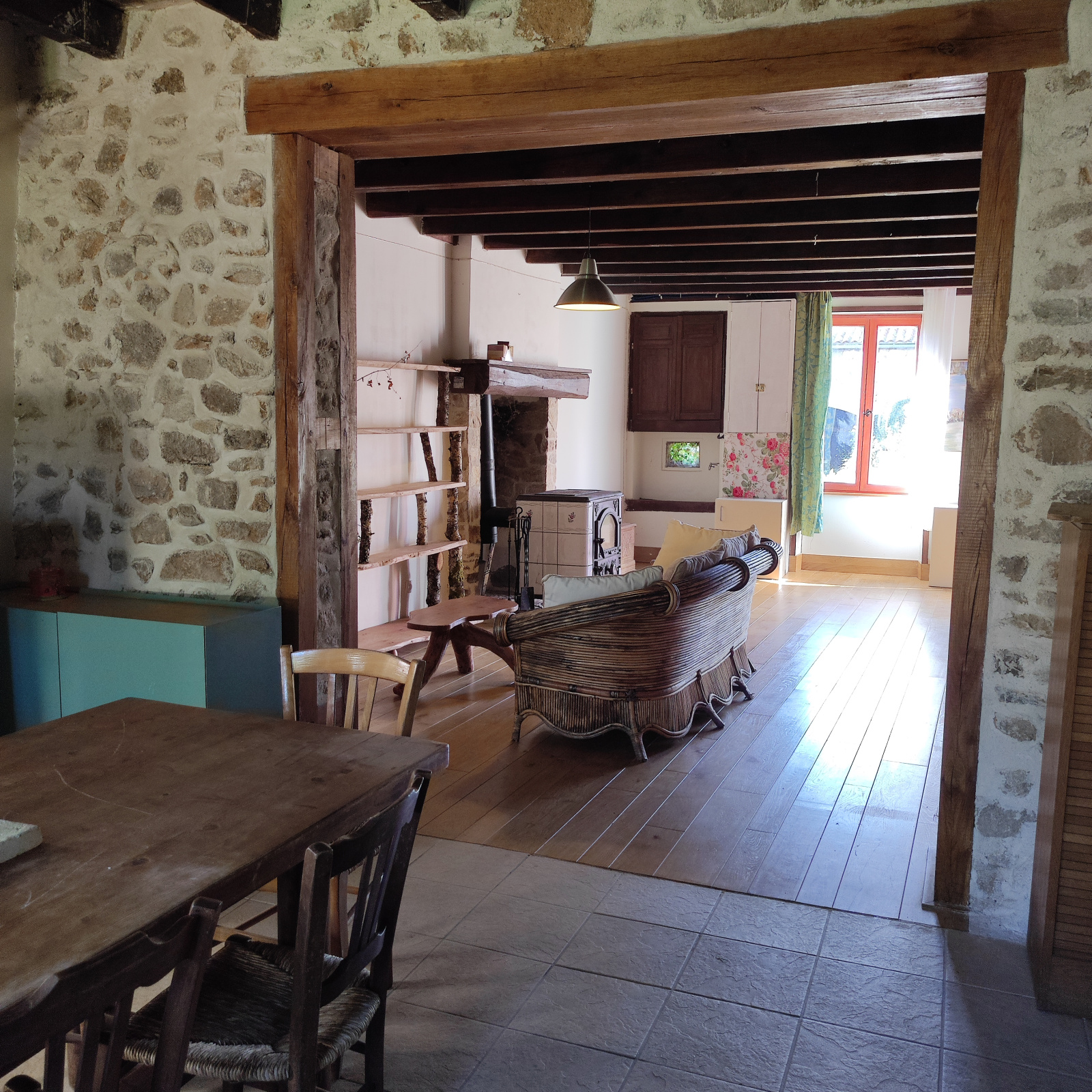 La seconde maison d'environ 99 m² comprend une très belle pièce de vie avec poêle à bois alsacien Oliger et une cuisine ouverte en rez-de-chaussée, et un palier desservant à l’étage, deux chambres, une salle d'eau, et un WC séparé.