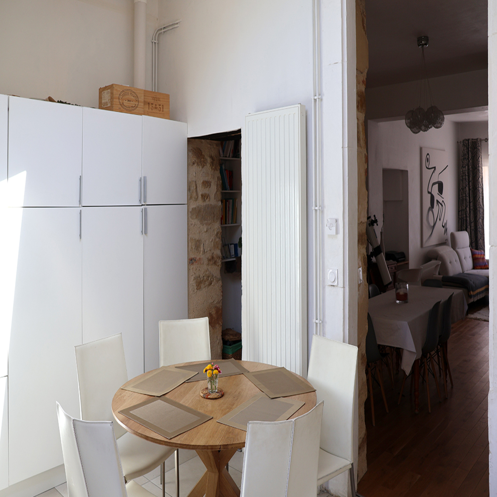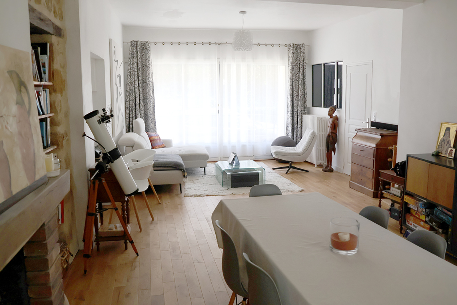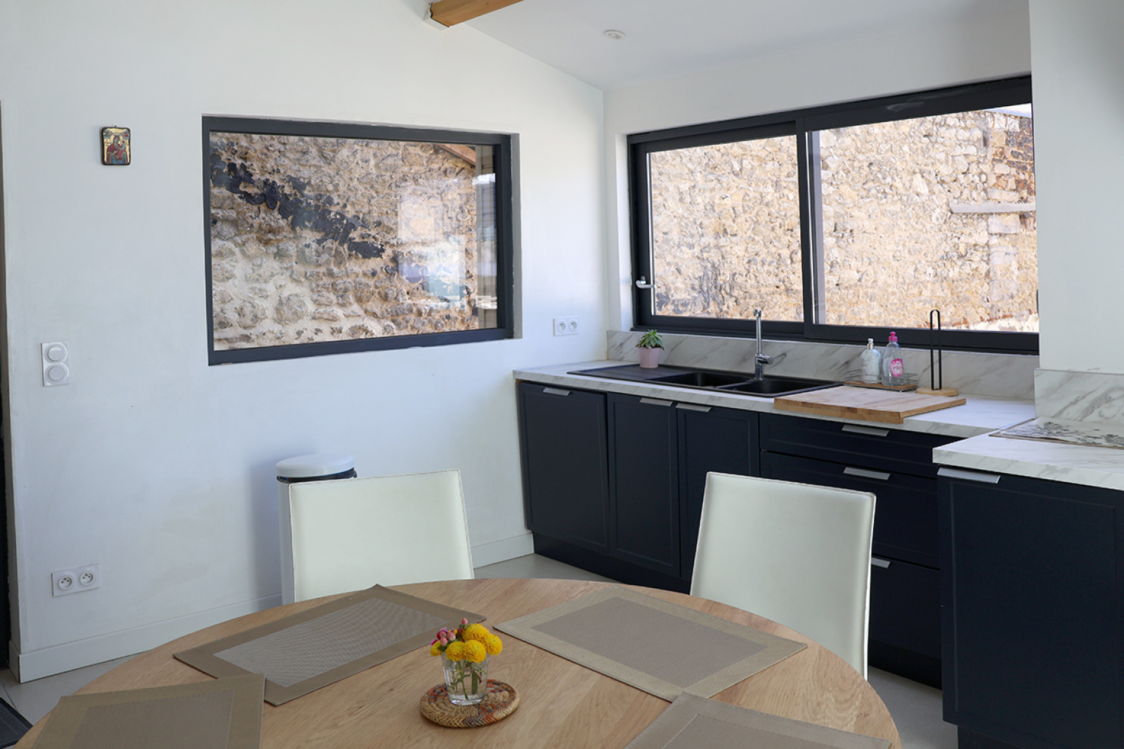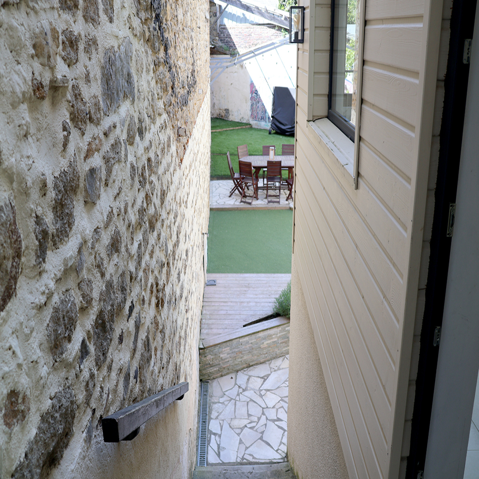 - au RDC : une entrée-couloir, une pièce de vie, et une cuisine aménagée et équipée donnant sur le jardin clos de murs et sans vis-à-vis ;