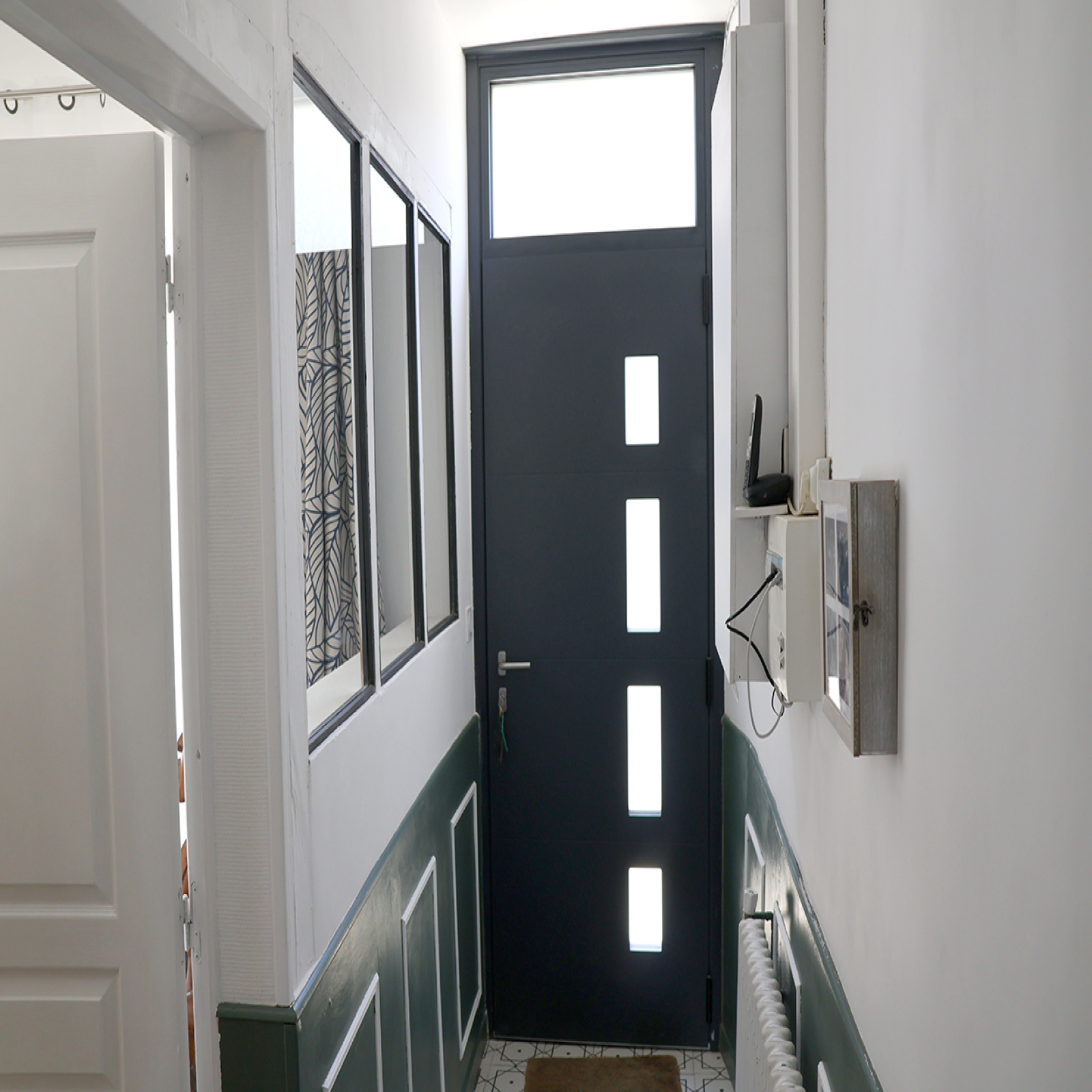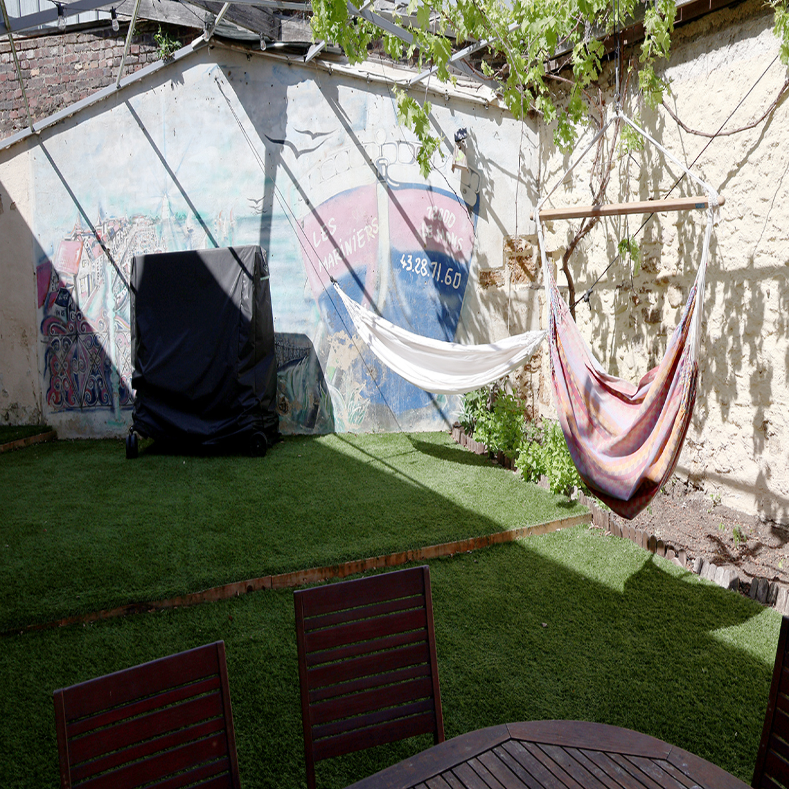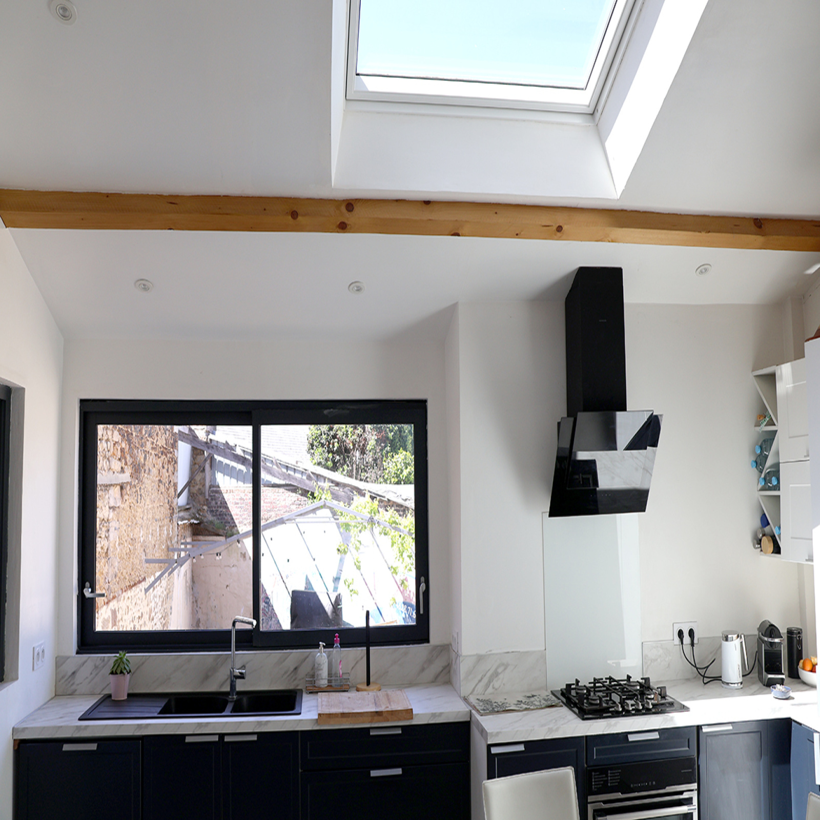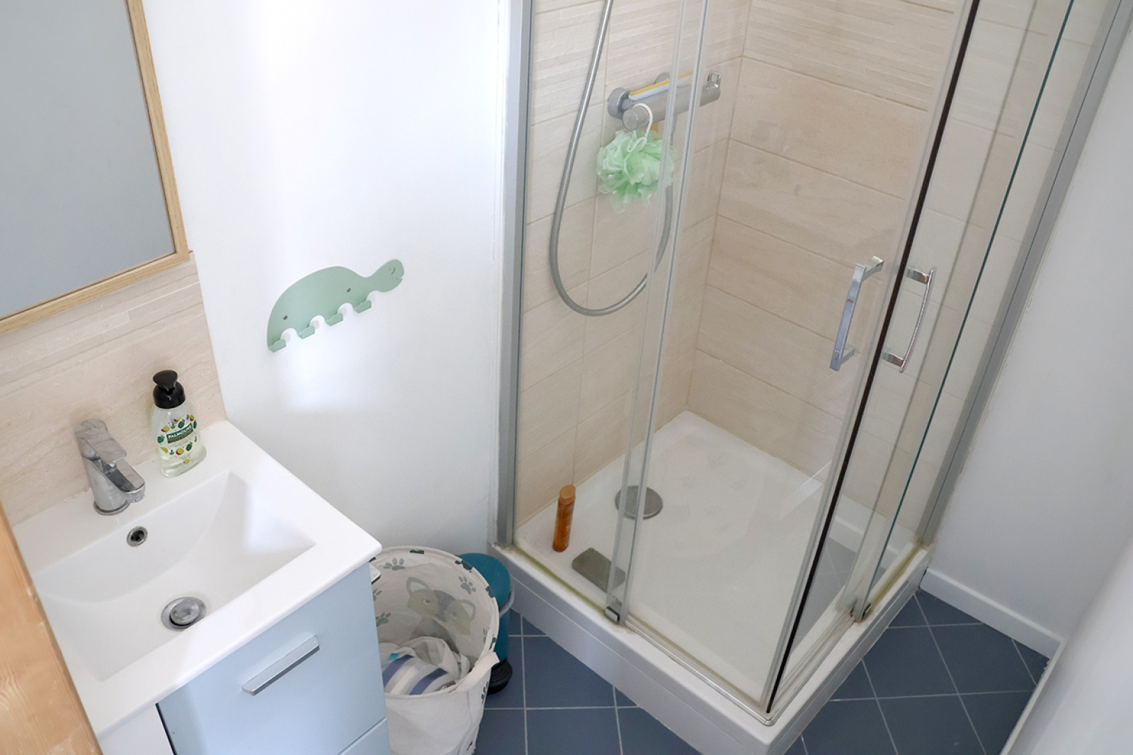 - au RDC : une entrée-couloir, une pièce de vie, et une cuisine aménagée et équipée donnant sur le jardin clos de murs et sans vis-à-vis ;