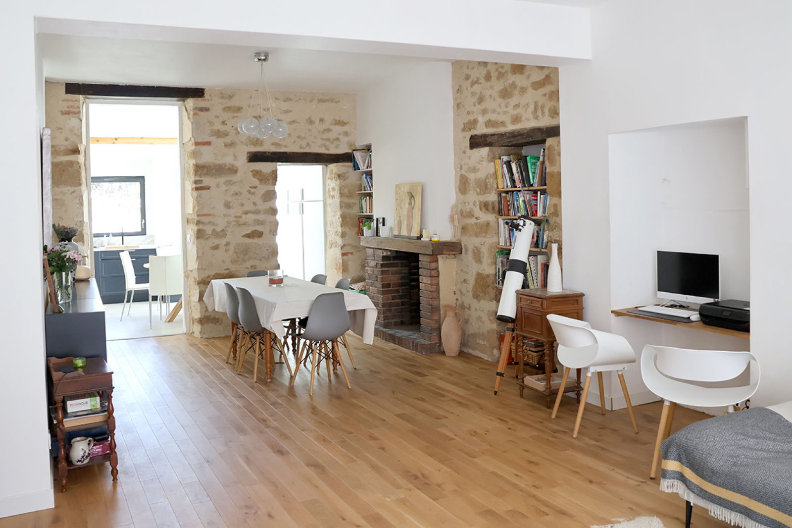 L'agence immobilière ENTREZCHEZVOUS COM, honoraires très réduits, à 2.9 %* seulement, vous propose à la VENTE, sur les bords de la Sarthe, secteur Les Quais, au cœur de la ville du MANS, proche de toutes commodités (transports en commun, écoles, commerces, et parc), une MANCELLE entièrement rénovée, lumineuse, d’une surface habitable d'environ 145.62 m² (environ 214.78 m² au sol avec les dépendances), comprenant :