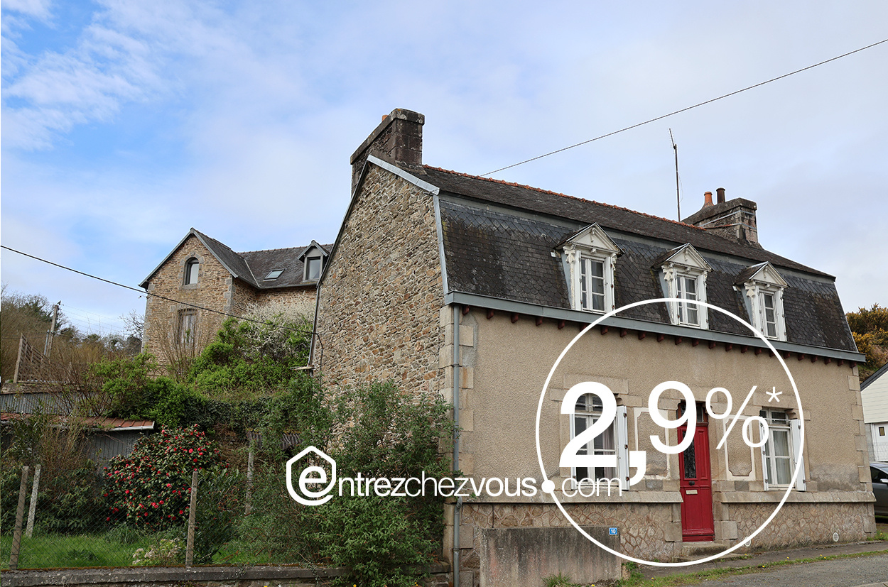 L'agence immobilière ENTREZCHEZVOUS COM, honoraires très réduits, à 3.21 %* seulement, vous propose à la VENTE, située à 5 min à pied des commerces, du collège et des terrains de sport de BELLE-ISLE-EN-TERRE, une MAISON en pierres des années 1900, entièrement à rénover, d’une surface d'environ 100 m², comprenant :