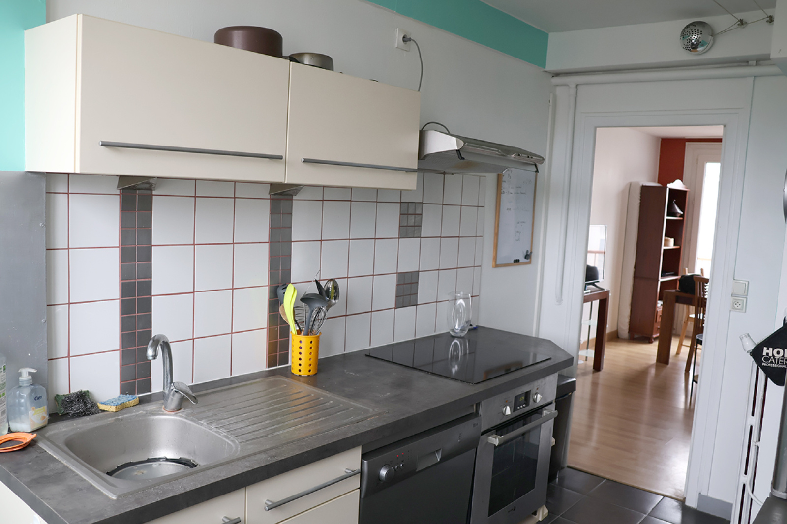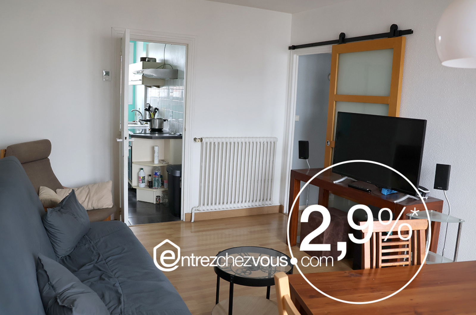 L'agence immobilière ENTREZCHEZVOUS COM, honoraires très réduits, à 2.9 %* seulement, vous propose à la VENTE, à RENNES, quartier Cleunay, à deux pas de la station de métro "Cleunay" de la ligne B, et d'arrêts de bus, et à proximité de toutes commodités (commerces, écoles, pharmacies, banque, ...), cet APPARTEMENT T4, traversant Est / Ouest, au 3e étage, d'une surface de 66.90 m², comprenant : une entrée/dégagement avec placard, une pièce de vie orientée Ouest comprenant, trois chambres dont deux avec placard, une cuisine aménagée et équipée, une salle d'eau, un WC séparé et une loggia de 1.47 m².