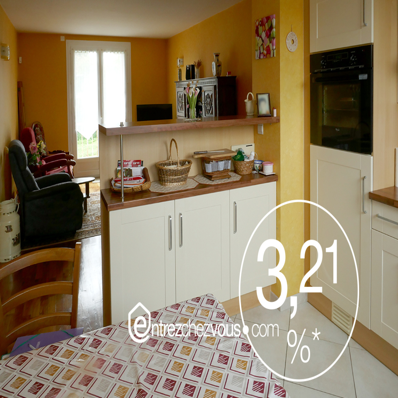 - au 1er étage : un palier, un séjour sur parquet, une cuisine ouverte, aménagée et équipée, trois chambres sur parquet, une salle d’eau avec radiateur de type ACOVA, et un WC séparé.