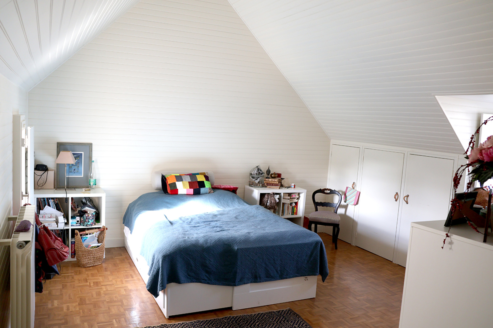 - A l'étage : un palier, une salle de bains, une chambre de 20 m² avec placards aménagés sous pente, une salle de bains avec baignoire, douche et double vasque, un dégagement mezzanine actuellement à usage de salle de jeux, trois chambres (deux de 14 m²avec placards, et une de 11 m²), et un WC séparé.